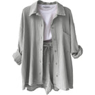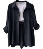 ️ Elegant Design: Featuring a sophisticated turn-down collar on the top and stylish shorts, this outfit perfectly balances elegance and youthful charm.