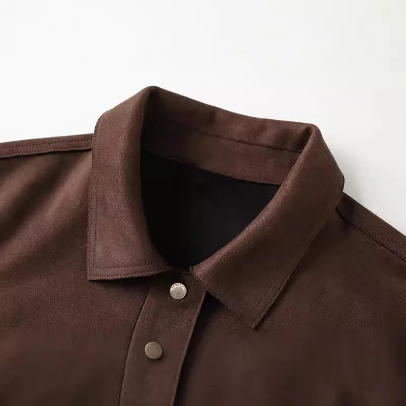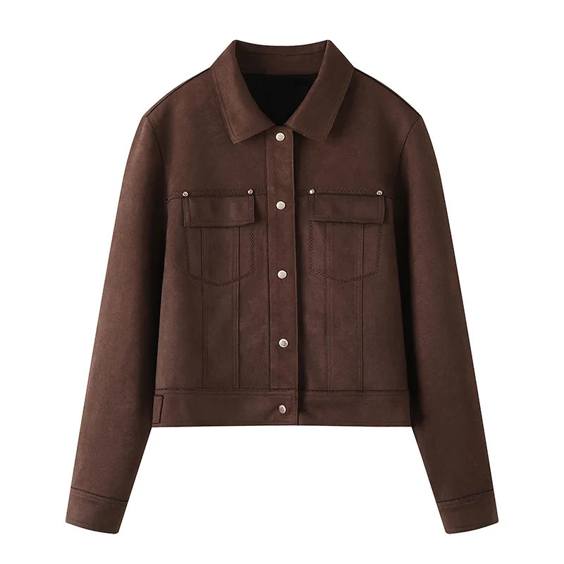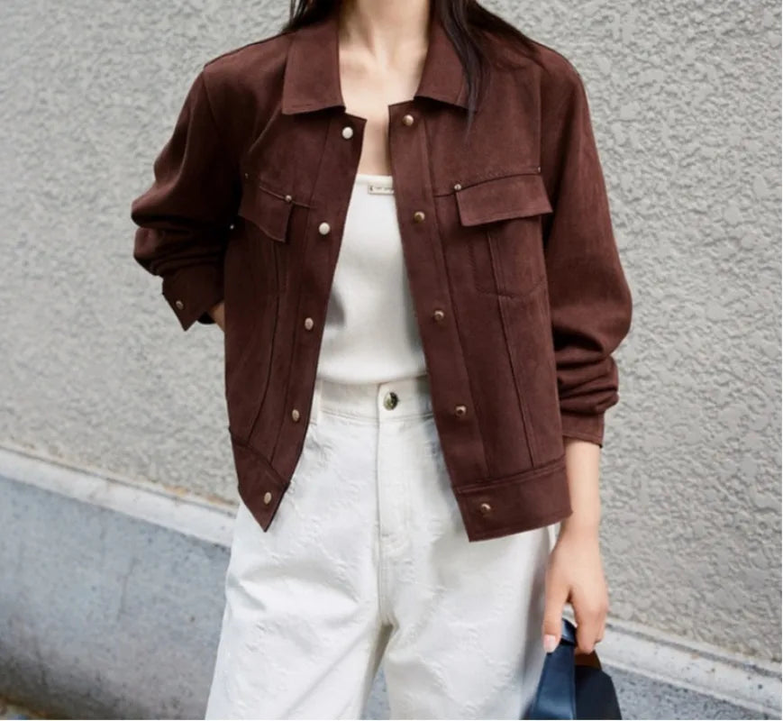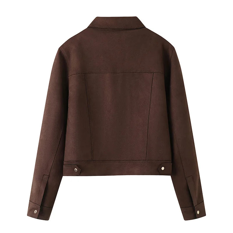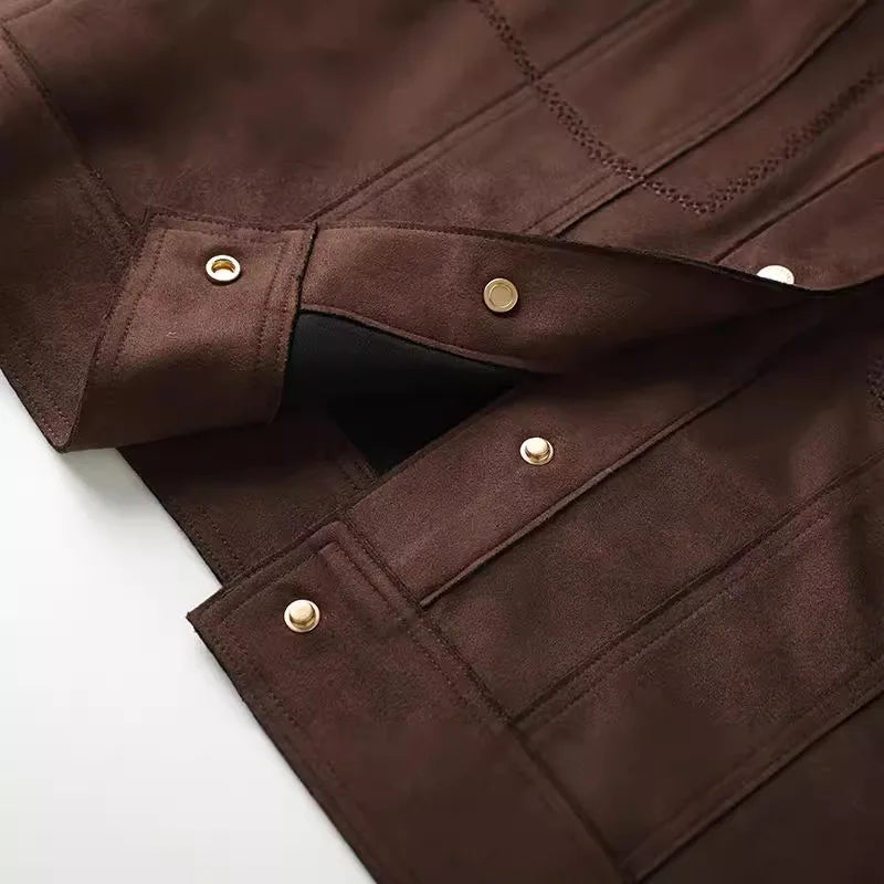 A timeless piece that adds a touch of sophistication to any outfit. This elegant brown jacket is crafted from soft suede, making it both stylish and comfortable for transitional weather. Its vintage-inspired design ensures that it stands out while remaining versatile for various occasions.